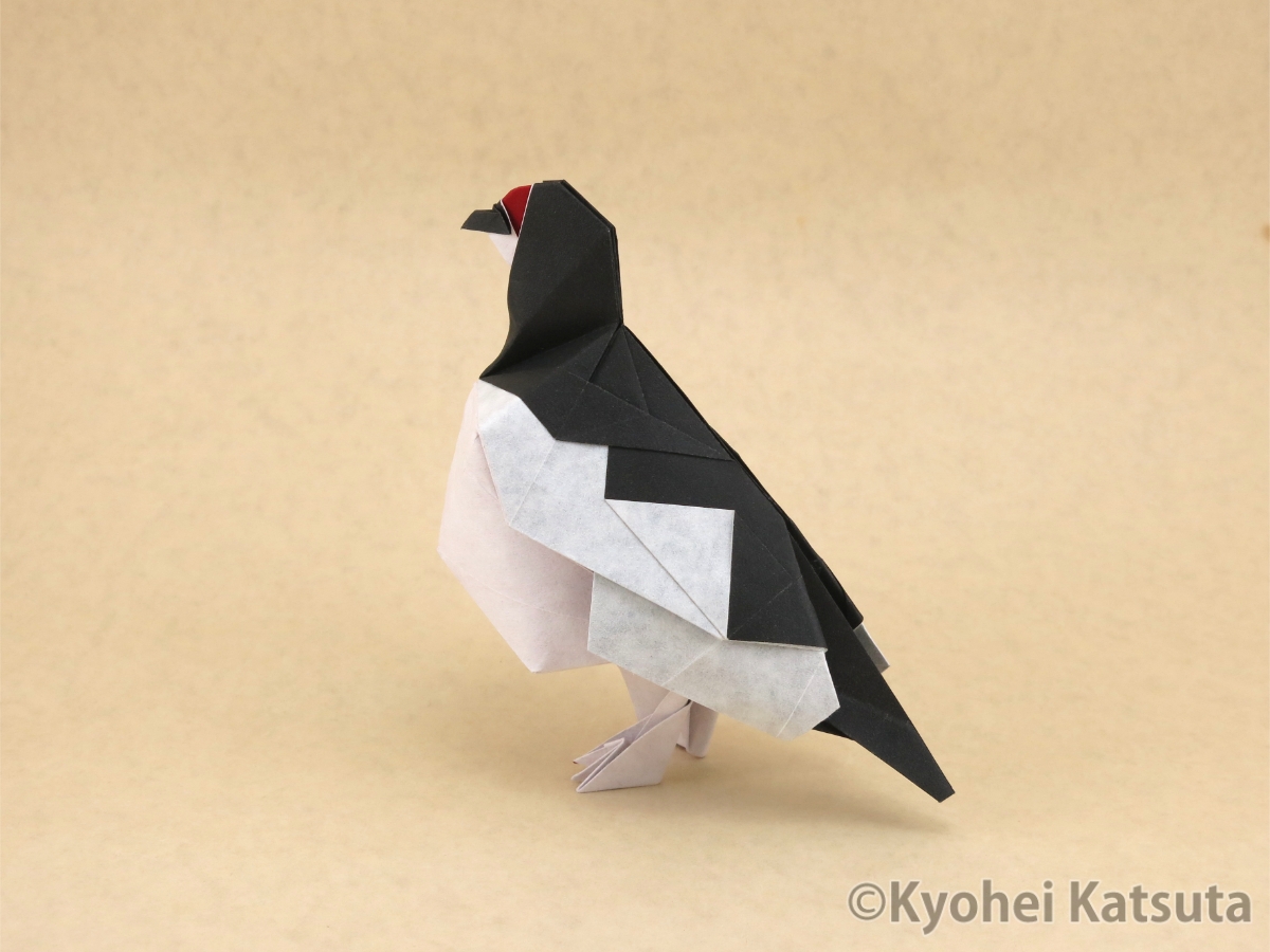 同じ水鳥では芸が無いのでどうしようか考えた結果、夏毛のライチョウはおそらくあまり折られていないので丁度いいだろうと手を付けましたが、頭部のデザインを決めるのに思いの外手こずりました。